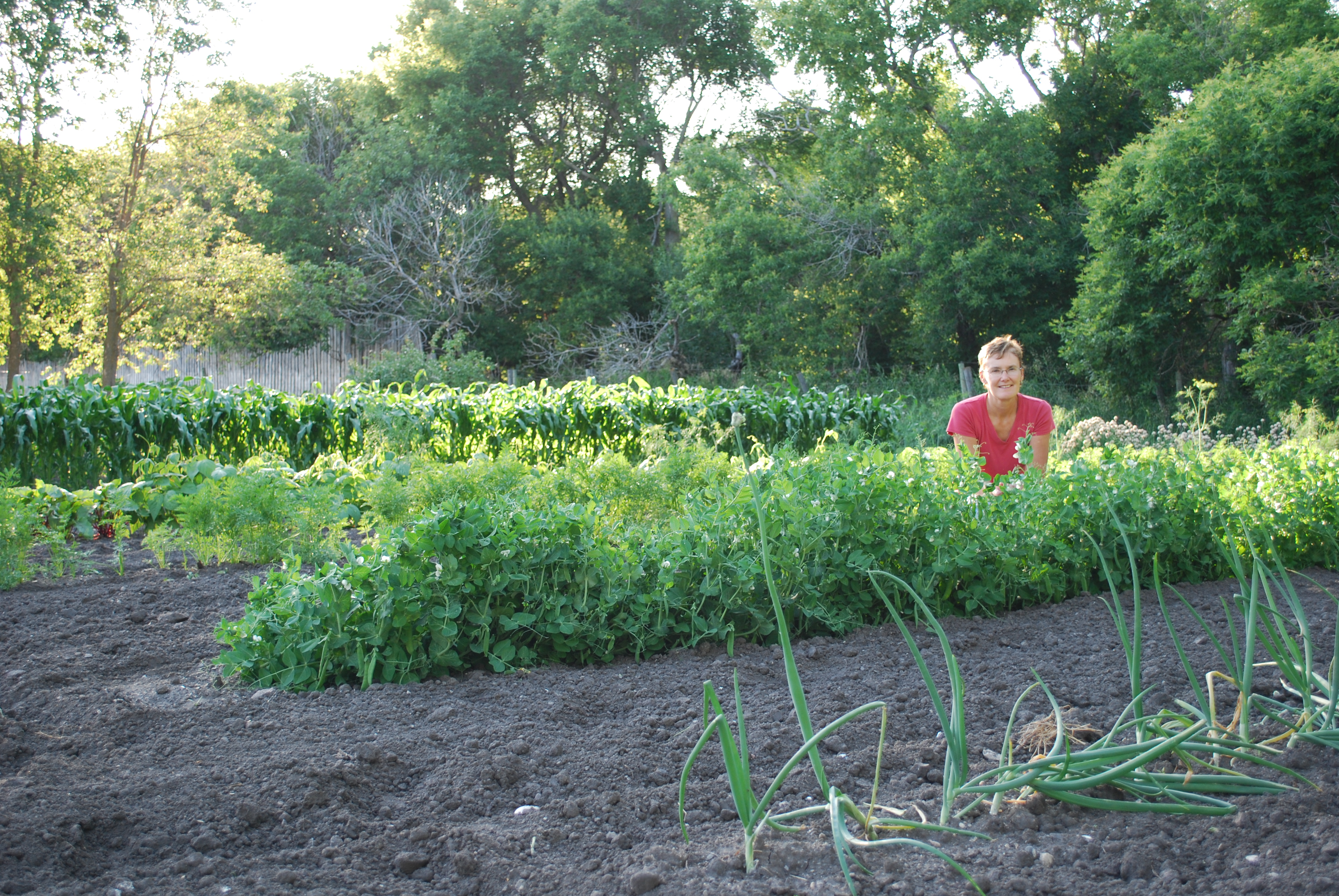 My mom in her vegetable garden.