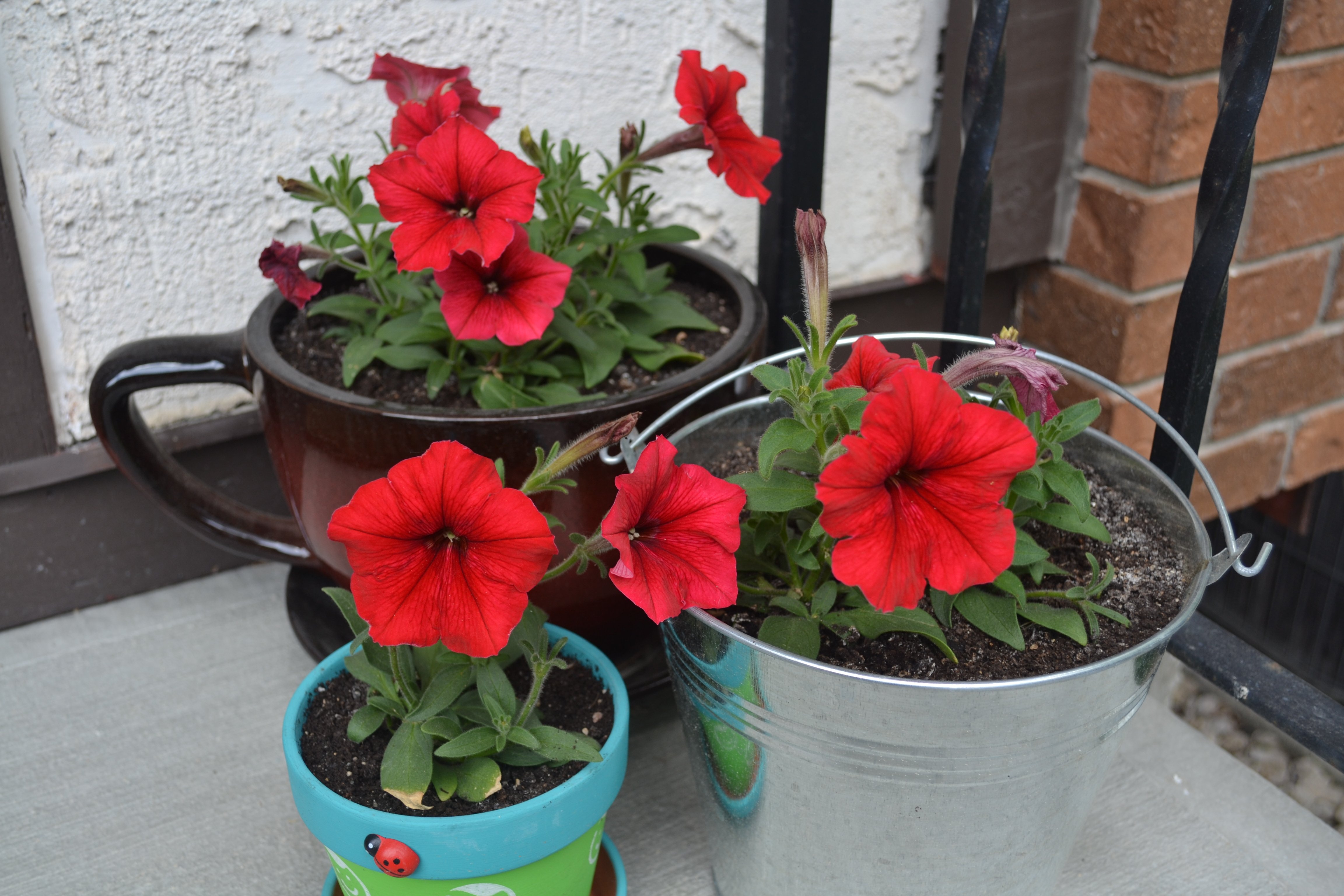 For this Wordless Wednesday I’m sharing a few photos of beautiful flowers. Some of these flowers are my mom’s at the farm and some are mine at my condo. Red is my favorite color so I often choose bright red flowers. Unfortunately I only have a tiny plot to plant flowers in at my condo. I’m not used to this as I grew up with a big yard on the farm. Someday soon I hope to have a decent-sized yard where I can plant flowers and a garden.