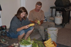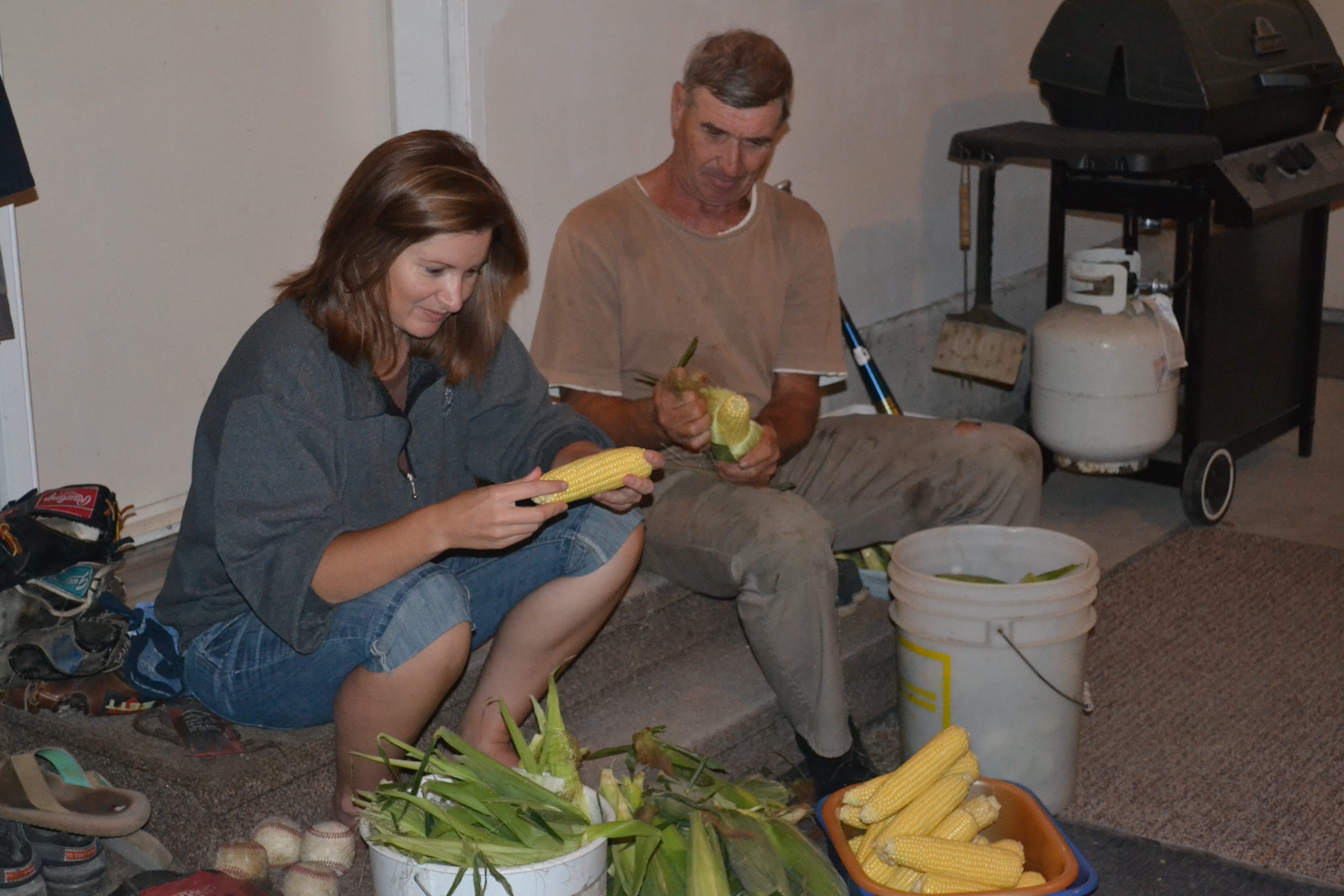 Sweet corn is a summer treat on the Prairies. My mom usually grows a couple rows of corn in her garden. Of course we eat some of the corn on the cob and some we put in bags and store in the freezer to be enjoyed during the winter months. Here is a series of photos showing us doing corn.