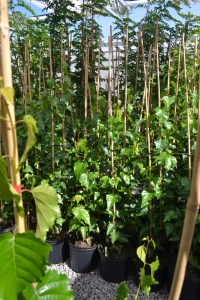 We chowed down on lunch while Donald Ziraldo, chair of the Vineland Research and Innovation Centre, and Dr. Jim Brandle, CEO of the Vineland Research and Innovation Centre, spoke to us. From there we split into four groups and visited four different parts of the research centre. We visited yet another winery called the Foreign Affair Winery, which specializes in making prestigious wines in the Old World Amarone tradition. We discovered genomic techniques and technologies for breeding new varieties of flowers and vegetables from Dr. Daryl Somers. This was particularly interesting to me as Dr. Somers used to work at the Agriculture and Agri-Food Canada (AAFC) Research Station in Morden, Manitoba, which is near where I grew up. There he worked on rose breeding until AAFC moved the rose breeding program to Ontario. We also learned about the Greening Highways project, which focuses on pollution mitigation and carbon sequestration; and increasing tree survival in stressful environments. And finally, we toured plots where various world crops such as fuzzy melon, yard long beans, Chinese hot peppers, okra and eggplant, are being produced for the ethnically diverse Canadian population.