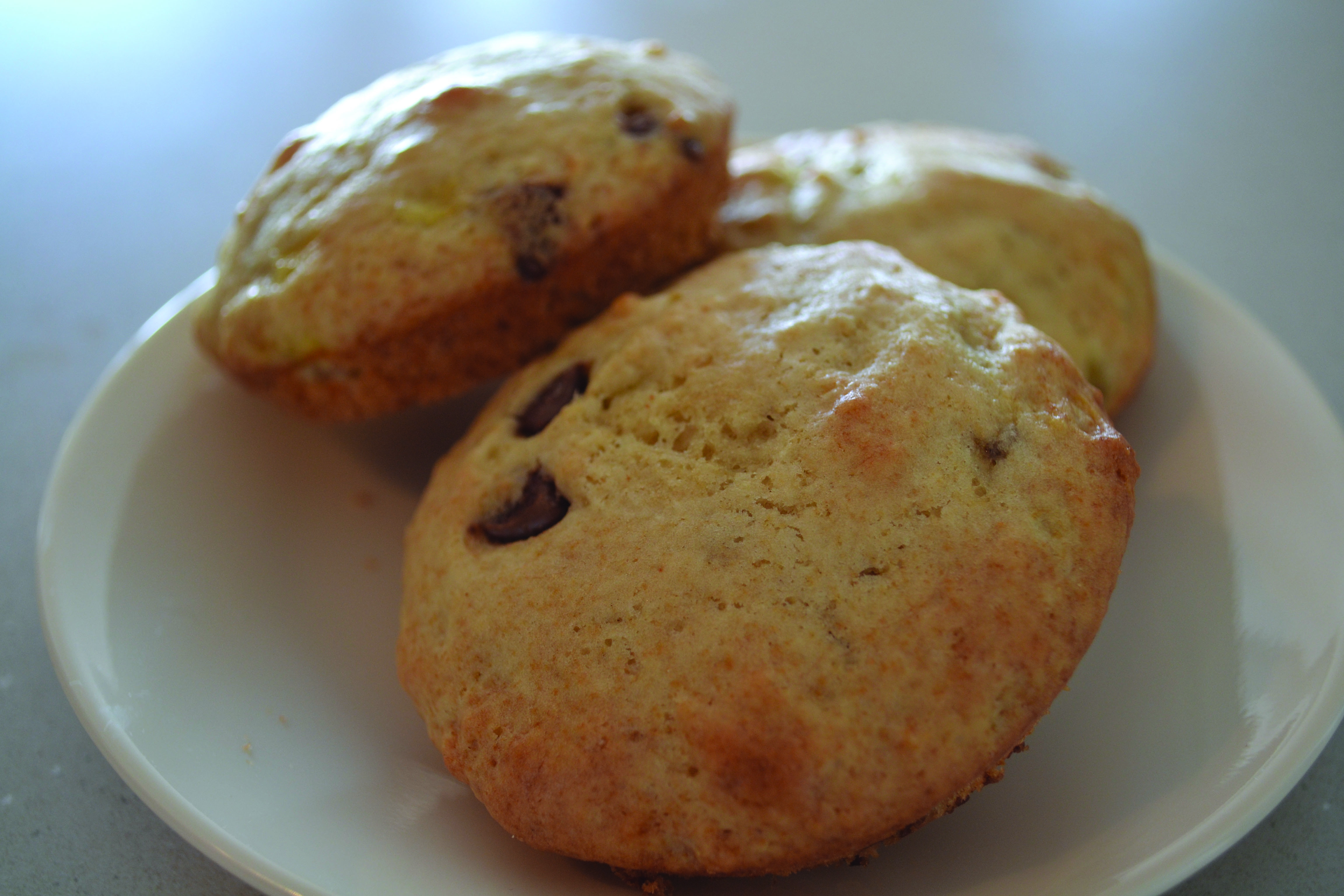More than a month ago I bought a muffin top pan from a quaint little store in Cochrane, Alberta, which is close to Calgary, and I finally got around to using it recently. I found a banana chocolate chip muffin recipe on the Internet specifically for muffin top pans. Here’s the recipe on Diana’s Desserts website. I prefer the tops of the muffins to the bottoms.