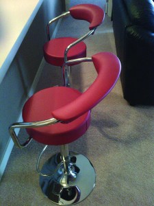 Using a house-warming gift card I received from my realtor turned friend, I bought these fun red bar stools at Home Outfitters. Ever since I purchased a condo with a breakfast bar I’ve been wanting to get some bar stools. And if you’re an avid reader of this blog you know I love the colour red so of course I chose the red stools. What do you think of my choice?