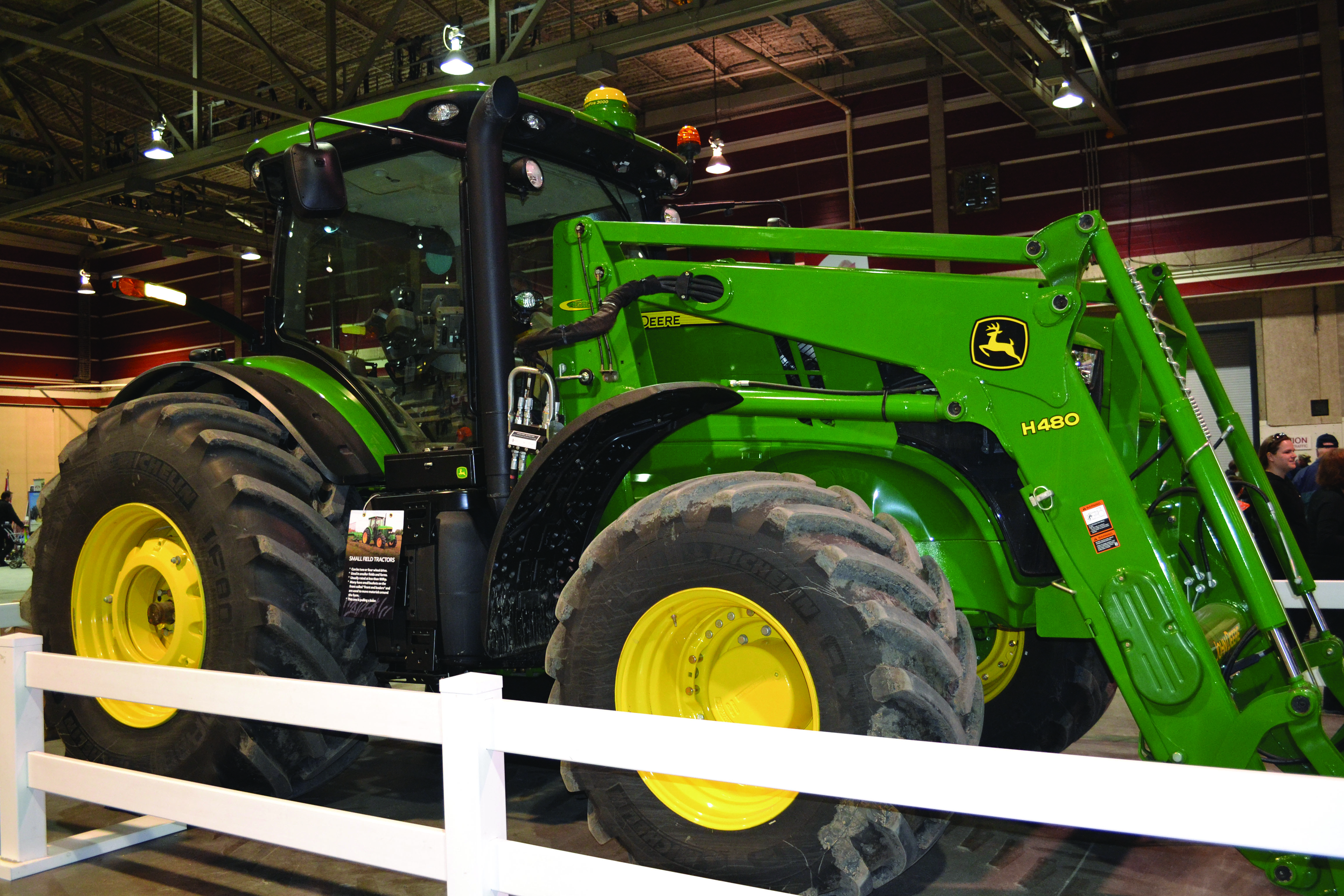 Green machinery was scattered around the building.