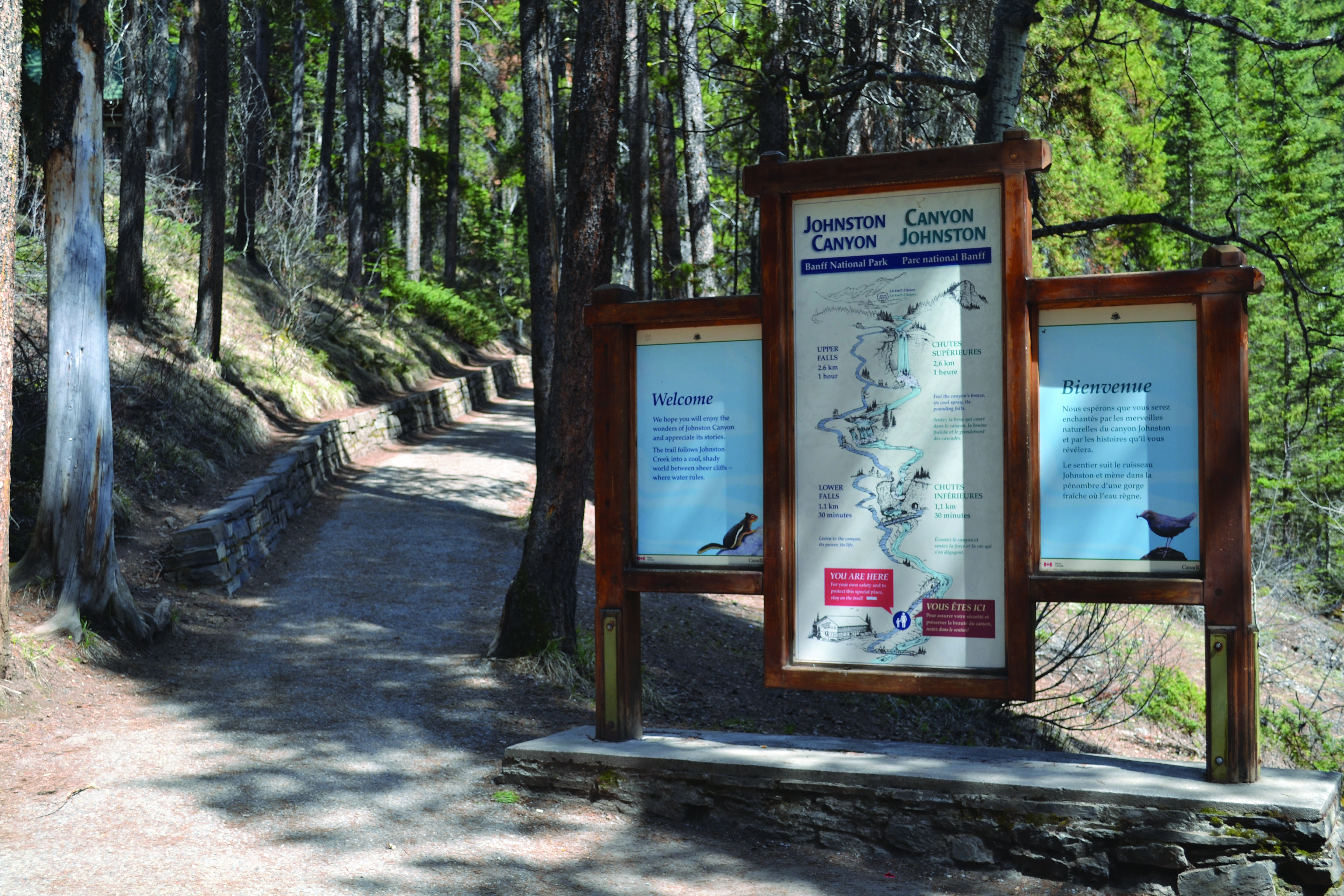 This past weekend we ventured out of the city to Banff National Park located west of Calgary in the mountains. In the park we stopped at Johnston Canyon. We walked to the lower falls and then further on to the upper falls. It was a beautiful day for a hike. Here are some photos from the day.