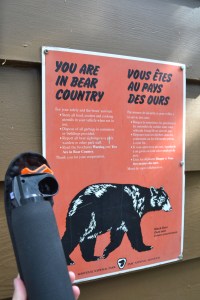 “You Are In Bear Country.” A sign at the campground. And me holding the bear spray.