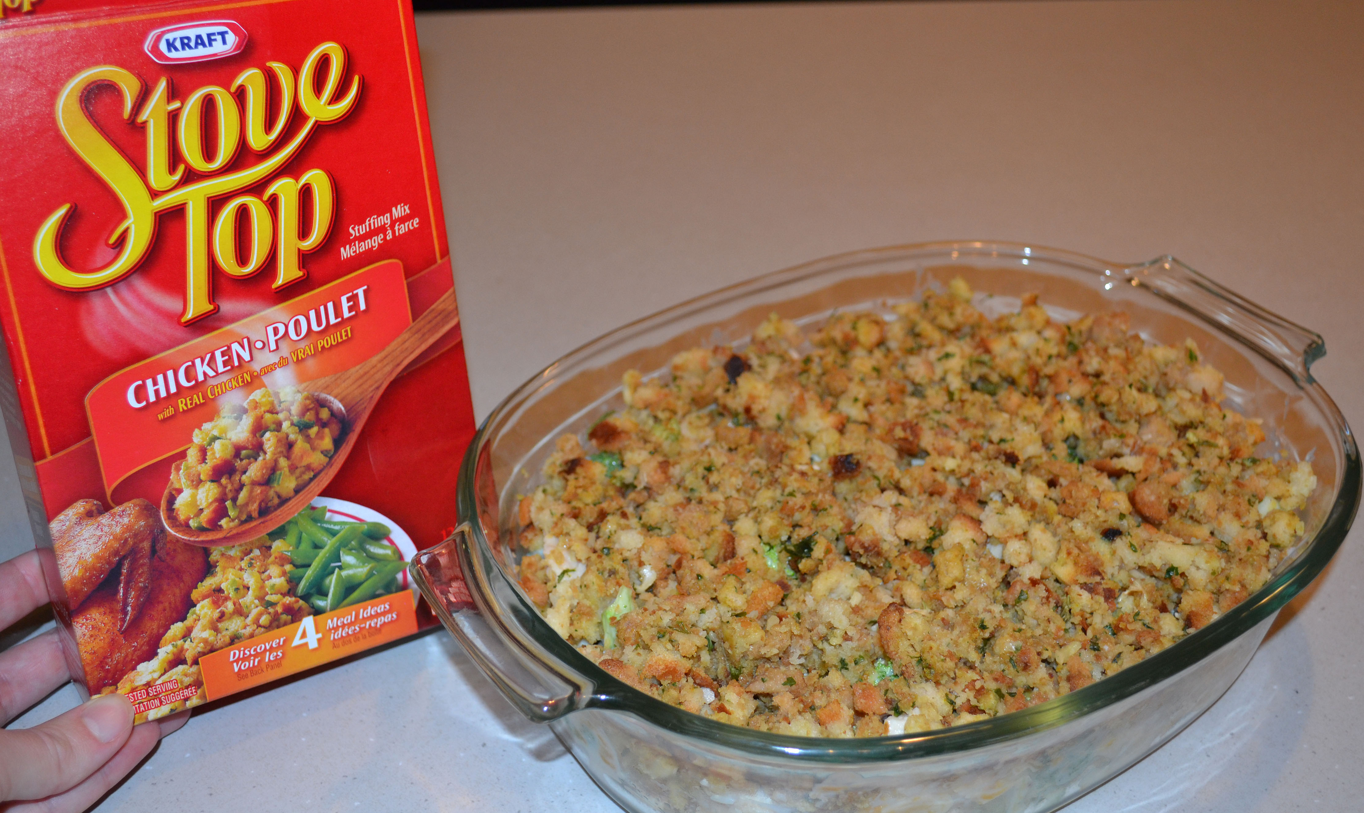 This casserole recipe can be found on the back of some Kraft Stove Top Stuffing Mix boxes. My family loves Stove Top stuffing. We would rather make this stuffing than make it from scratch. And yes, I think it’s just as good. Some things are definitely better made from scratch but not always. And besides, why reinvent the wheel. This stuffing is quick and easy to make AND it tastes great.