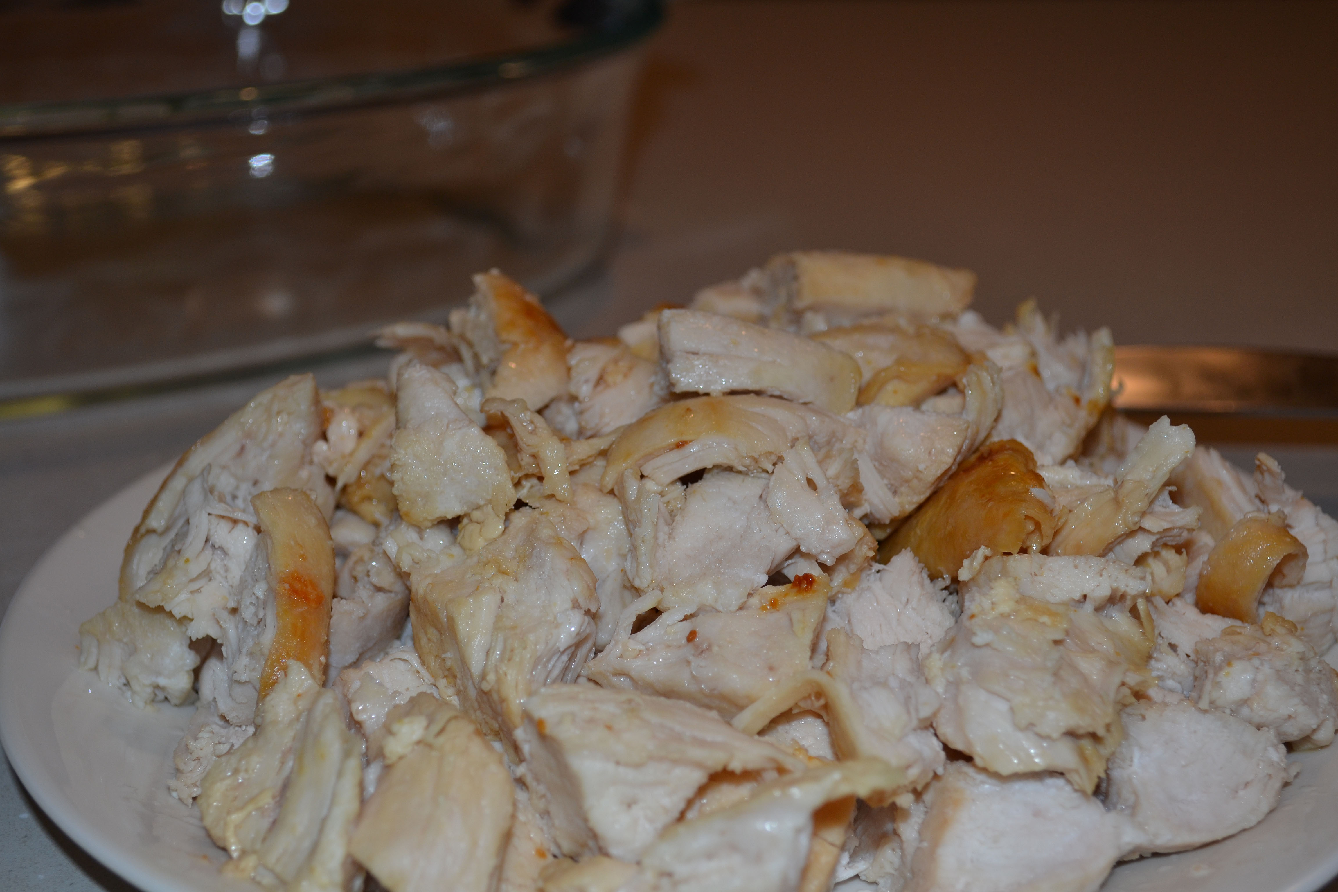 This Hunk of Meat Monday recipe is actually several small hunks of meat – chicken to be exact. I started by frying up five chicken breasts. To make the process go quicker I cut them up into smaller pieces. I also like to have smaller chunks of chicken in this casserole.