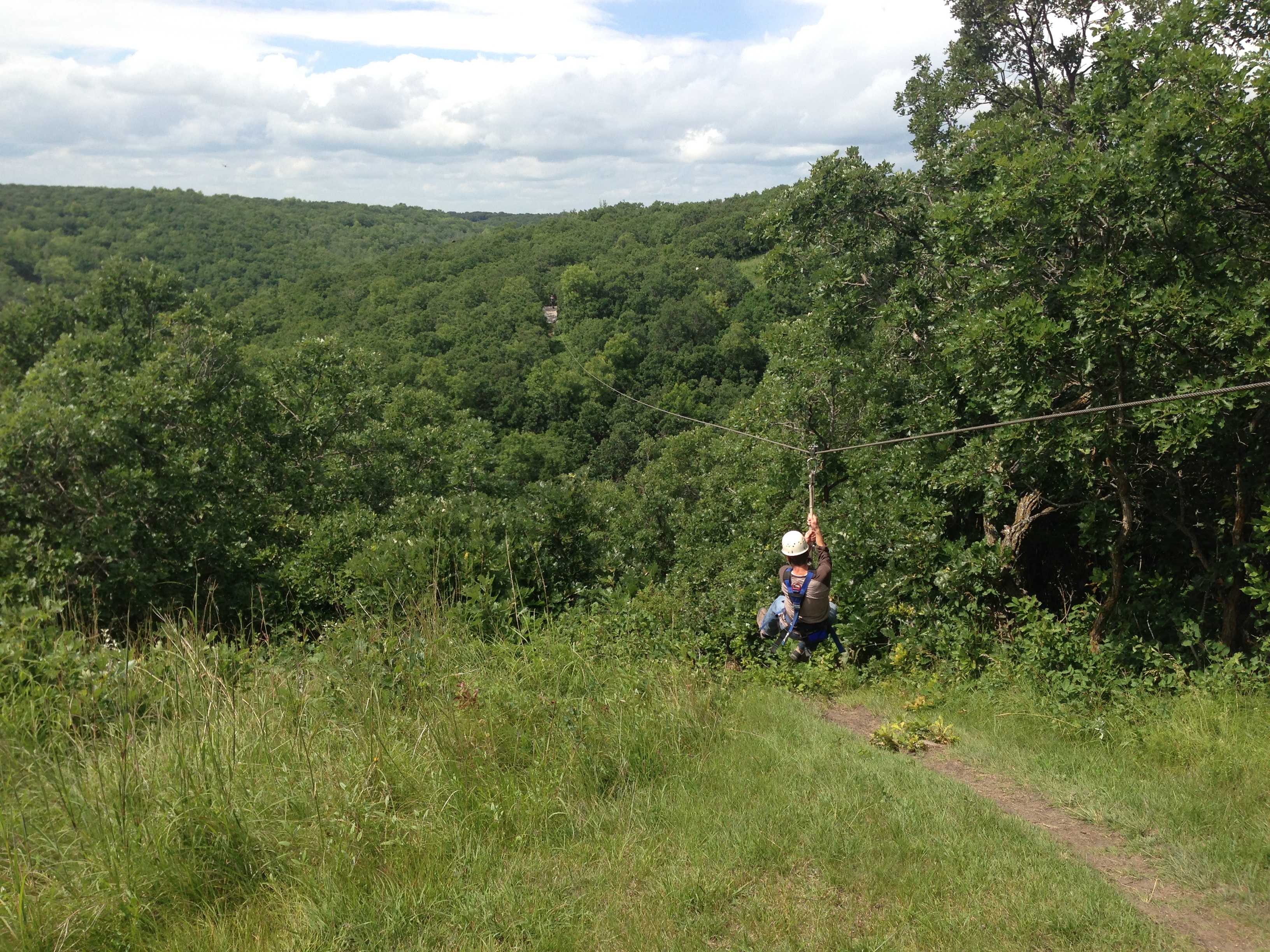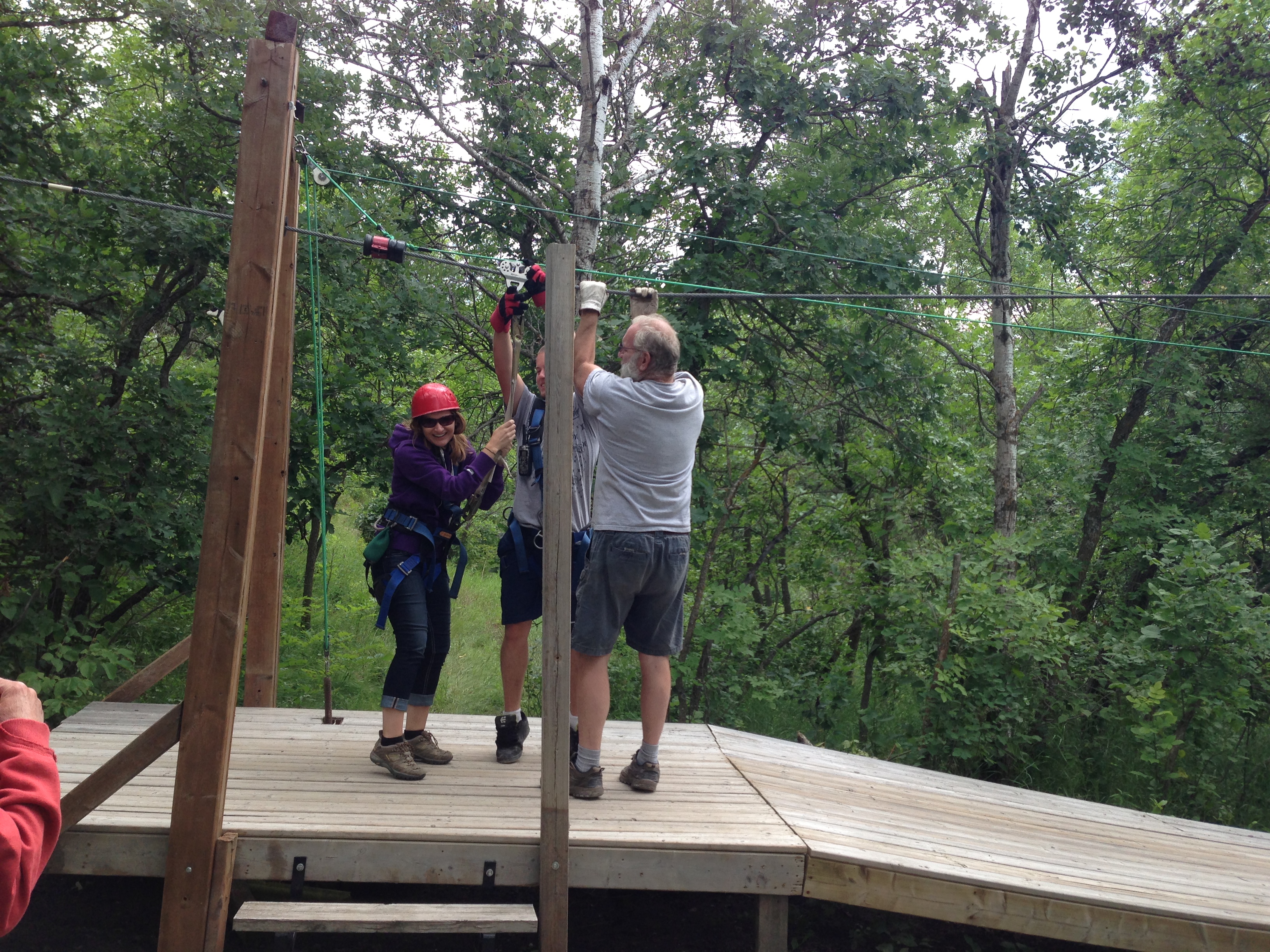 Last week we went on a high wire zipline adventure in the beautiful Pembina Valley near my family farm in southern Manitoba. The views of the valley were amazing. There were five cables carrying us above the trees and across ravines. The cables ranged in length from 500 to 1,000 feet and were set up like a golf course. We hiked from one zipline to the next on a warm day.